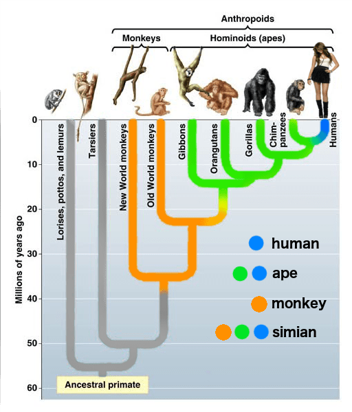 Lointains, disais-je, car les lignages des humains et des chimpanzés ont fait route à part il y a environ 8 millions d’années 🐒. En effet, lorsque deux populations ne se fréquentent plus, elles finissent par se différencier à tel point qu’elles cessent d’être interfécondes, et à ce point de rupture nous disons qu’elles deviennent deux espèces différentes. De telles spéciations se lisent dans les traces du passé (sur le mode d’un travail d’historien), mais l’évolution s’observe aussi en direct sur des populations d’organismes à temps de génération court (mouches drosophiles, bactéries… 🪰). On a même vu une nouvelle espèce de moustiques apparaître dans le métro londonien, un habitat qui vous prodiguera chaleur et nourriture à profusion si vous aimez le sang de mammifère[5].
