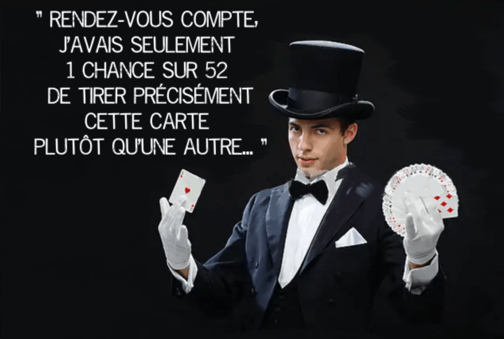 Les chansons de Michael Jackson donnent souvent envie de bouger 🕺, les chaînes nucléotidiques se répliquent 🧬 et les mammifères aiment le goût du sucre 🍭… Personne ne prétend que ces régularités persistantes sont de purs hasards ! Elles cachent sûrement des explications, mais s’il suffisait d’invoquer l’intention d’un super magicien invisible pour élucider toutes sortes de questions irrésolues, les scientifiques et les enquêteurs de police seraient tous au chômage. Par exemple, dans l’affaire Sally Clark précédemment mentionnée, on avait négligé la possibilité qu’une prédisposition commune explique la mort de deux enfants issus de mêmes parents, plutôt qu’une intention meurtrière.